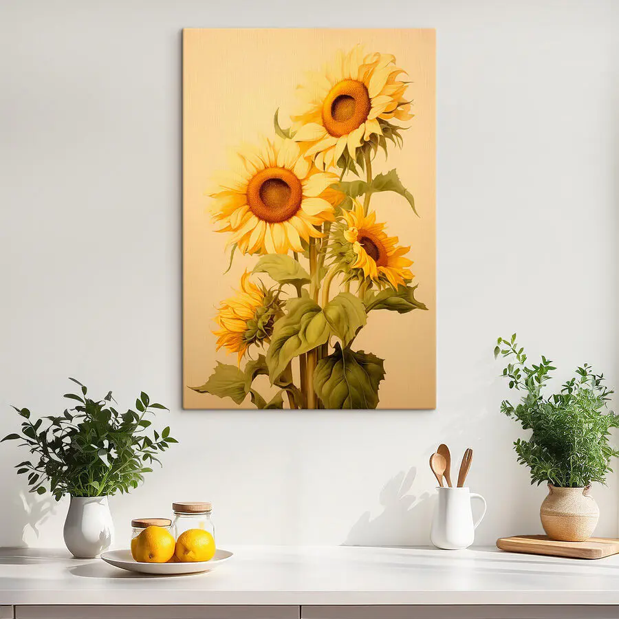 Înveseliți orice cameră cu această imprimare uimitoare pe pânză cu floarea-soarelui. Este ca și cum ai aduce un câmp de soare chiar în spațiul tău. Imaginați-vă că intrați într-o cameră plictisitoare și - bum! - acele petale galbene vibrante ies în evidență pe fundalul moale. Perfectă pentru bucătărie, camera de zi sau chiar pentru un colțișor de lectură confortabil, creează o atmosferă veselă. În plus, floarea-soarelui este un fel al naturii de a ne reaminti să privim partea bună a lucrurilor. Această piesă are exact atingerea potrivită de căldură și farmec, ceea ce o face ușor de inițiat o conversație. Cui nu-i place un pic de fericire florală?