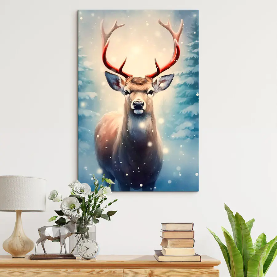 Tablouri Cerb cu coarne într-o pădure înzăpezită