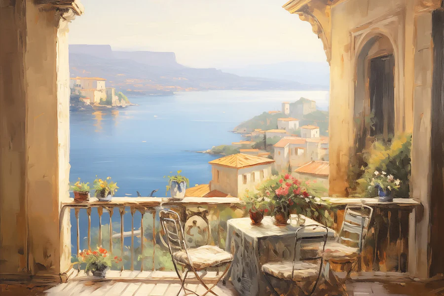 103.62 lei56.99 leiTablouri Pictura unui balcon cu vedere la un oraș și o mare