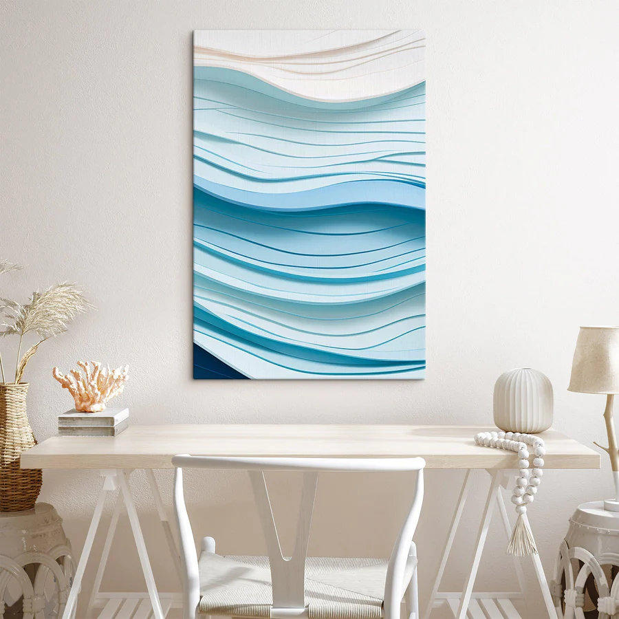 Imaginați-vă că pășiți într-o cameră în care valurile oceanului par să curgă direct de pe perete. Această imprimare pe pânză, cu minunatele sale linii ondulate albastre și albe, creează o atmosferă calmă care vă șoptește "relaxați-vă" de fiecare dată când treceți pe acolo. Este ca și cum ai aduce o bucată din marea senină chiar în casa ta - fără nisipul din pantofi. Perfectă pentru iubitorii de plajă sau pentru oricine are nevoie de un strop de liniște, această operă de artă poate transforma un spațiu plictisitor într-o evadare răcoroasă. Fie că se află deasupra unei canapele confortabile sau într-un colț de lectură liniștit, va stârni visuri cu ochii deschiși despre briza oceanului și zilele însorite. Scufundați-vă în decorul care vă face să vă simțiți ca în vacanță, chiar și atunci când doar vă relaxați acasă!