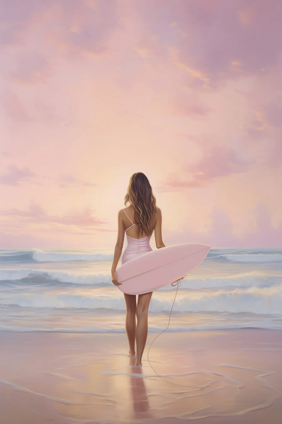 101.91 lei56.05 leiTablouri Fata care deține o placă de surf pe o plajă