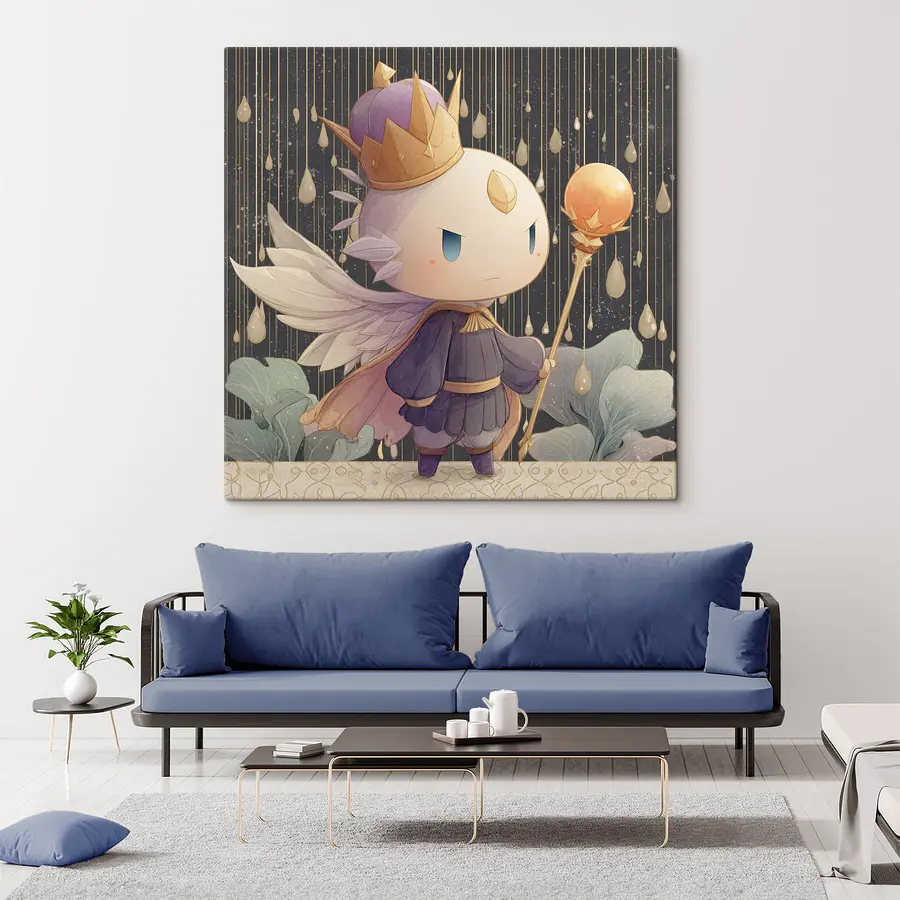 Transformați orice cameră cu această adorabilă imprimare pe pânză a unui îngeraș care poartă o coroană și ține în mână un sceptru. Este ca și cum ai adăuga un strop de magie fără praf de zână! Imaginați-vă acest personaj capricios cocoțat pe perete, veghind asupra lucrurilor și aducând în același timp o notă de bucurie. Este perfect pentru camera unui copil sau chiar pentru un colțișor de lectură confortabil. Culorile moi și designul fermecător vor încălzi inimile și vor stârni zâmbete. Fie că este un cadou sau un răsfăț pentru tine, acest îngeraș este gata să vegheze asupra spațiului tău - vorbim despre vibrații bune!